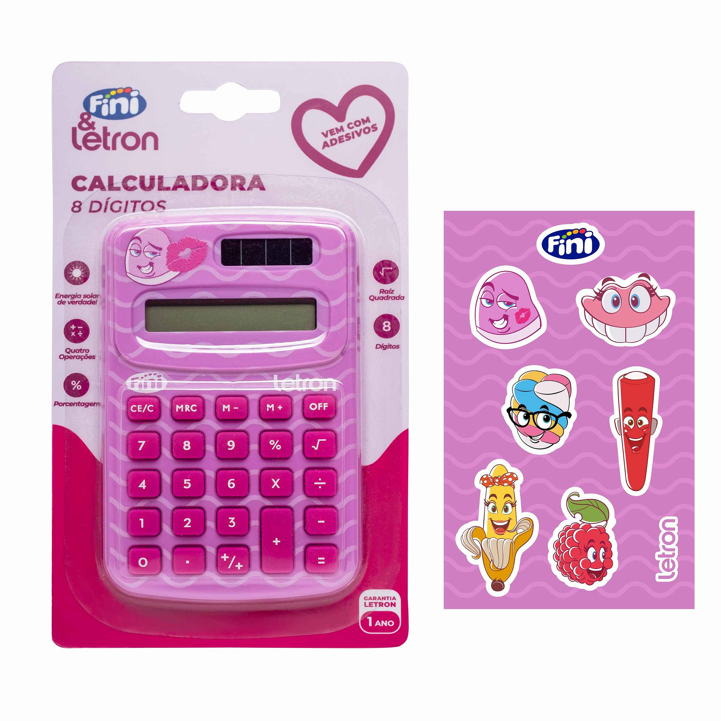 A Calculadora 8 Dígitos com Energia Solar e Cartela de Adesivos Sonic Fini chega para somar muitas alegrias e divertimento na realização das 4 operações básicas, além de cálculos de porcentagem e raiz quadrada. Seu design abstrato e divertido ganha destaque na cor lilás e estampa inspirada no personagem do docinho Beijo, da Fini! É uma forma de deixar a matemática ainda mais doce e estimulante. A Calculadora com Energia Solar Fini é leve, vem com bateria inclusa e energia solar de verdade. Além disso, acompanha uma linda cartela de adesivos, um mais fofo do que o outro, com os personagens Fini, ideais para alegrar e adoçar os momentos de cálculos, seja nos estudos ou no trabalho.
