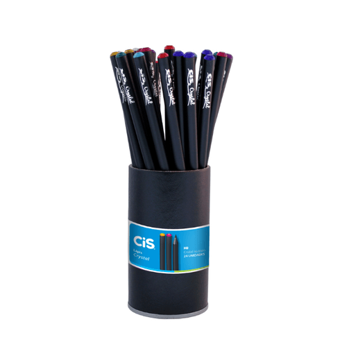 O Lápis Preto CIS Crystal combina a elegância do corpo preto fosco com um toque de cor vibrante na ponta. É a escolha perfeita para quem busca um material profissional, discreto e com um diferencial moderno.